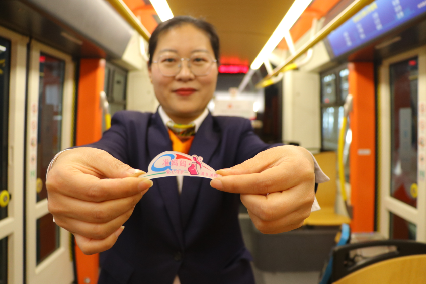 在“三八”國際婦女節(jié)來臨之際,青島有軌電車“巾幗志愿服務(wù)團(tuán)隊(duì)”將目光聚焦到車廂里,根據(jù)不同乘客人群的乘車需求,高度匹配精準(zhǔn)化服務(wù),為女性乘客打造了一列“女性友好”主題車廂。3月8日當(dāng)天,記者看到,有軌電車車廂里為哺乳期媽媽安裝了移動(dòng)式母嬰簾,為寶媽提供了安心的車廂一隅。為帶孩子乘車的乘客準(zhǔn)備了“愛心媽媽包”,里面裝有紙尿褲,濕巾,紙巾,衛(wèi)生用品等。為乘車哭鬧的兒童準(zhǔn)備了“乖乖兒童魔法袋”,里面裝有孩子們喜歡的小粘貼,小汽車等玩具。為孕期準(zhǔn)媽媽制作了“準(zhǔn)媽媽”胸牌,方便熱心乘客辨認(rèn)身份為其讓座,車廂乘務(wù)員在服務(wù)過程中也會(huì)給予特別關(guān)注和照顧。